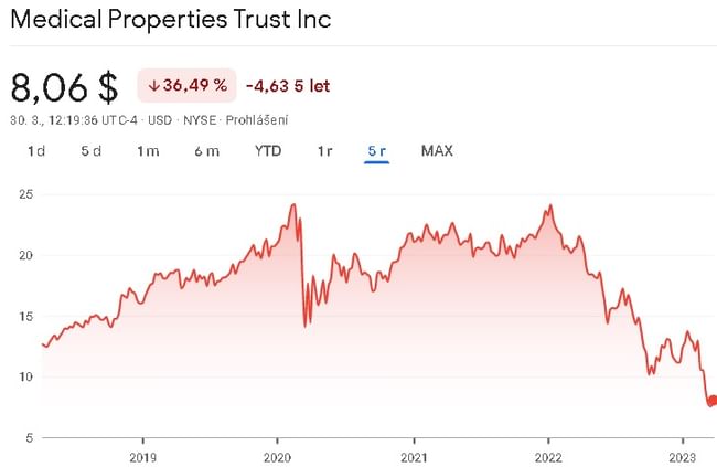 Неотдавнашните събития в банковия сектор, включително сривът на Silicon Valley Bank SVB Financial Group $SIVB и почти пълният срив на First Republic Bank $FRC, се отразиха негативно на някои инвестиционни тръстове за недвижими имоти (REITs), включително на MPW. Повишаващите се лихвени проценти оскъпяват финансирането на REITs, които разчитат на банкови заеми . Освен това $MPW е изправен пред вътрешни проблеми, като фалит на един наемател и друг наемател, който е закъснял с няколко месеца с плащането на наема.